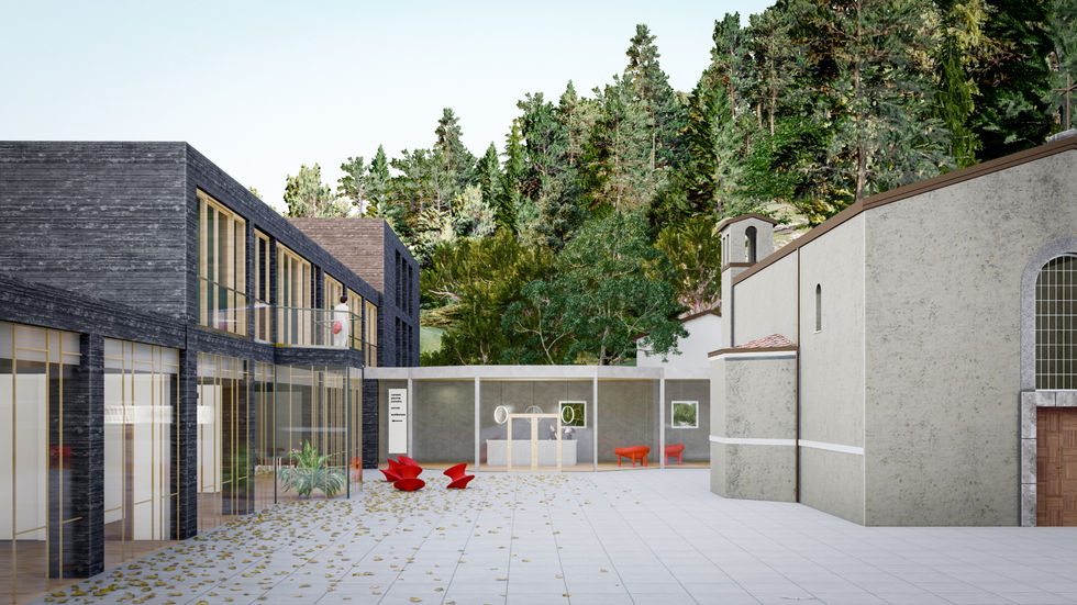 L'edificio si fa paesaggio ed esprime il luogo ed i materiali che lo circondano.